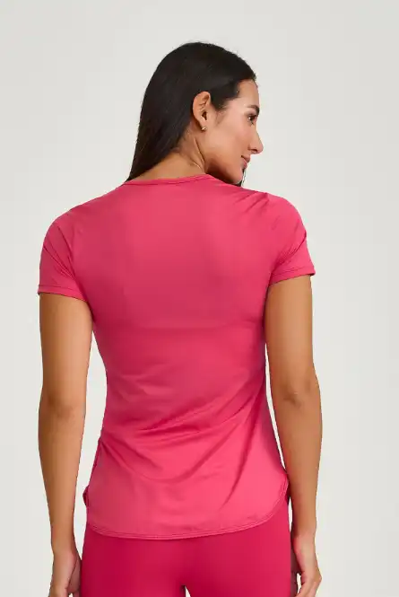 Blusa com barra arredondada, confeccionada em tecido que garante maior