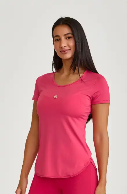 Blusa com barra arredondada, confeccionada em tecido que garante maior