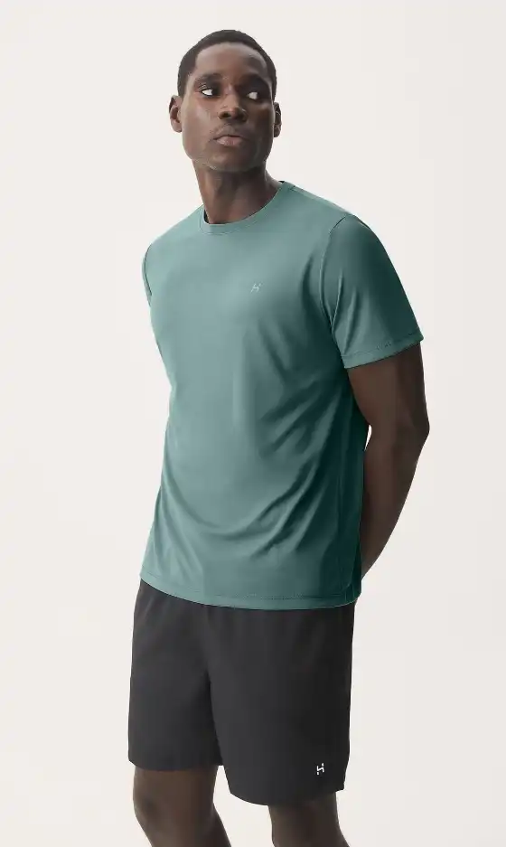 Camiseta esportiva básica elaborada em malha de poliéster que garante elasticidade e movimento. Conta com logo