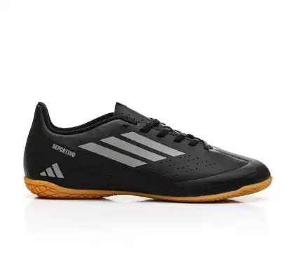 A Chuteira Adidas Deportivo III Futsal Masculino If1405 é ideal para jogos em quadras cobertas, com um cabedal feito em material sintético resistente que proporciona durabilidade e suporte. O solado é projetado para futsal, sem travas, oferecendo tração e aderência adequadas para superfícies internas. A entressola inclui um sistema de amortecimento que garante conforto durante longas partidas, enquanto o reforço na biqueira melhora o controle de bola para passes e chutes mais precisos. O calcanhar com formato anatômico mantém os pés firmes, e a língua perfurada, junto ao forro macio, assegura respirabilidade e frescor. A palmilha anatômica e o sistema de amarração com cadarços garantem um ajuste confortável e personalizado, contribuindo para a leveza e durabilidade do modelo. A chuteira combina conforto e desempenho, adequada para intensos jogos de futsal.