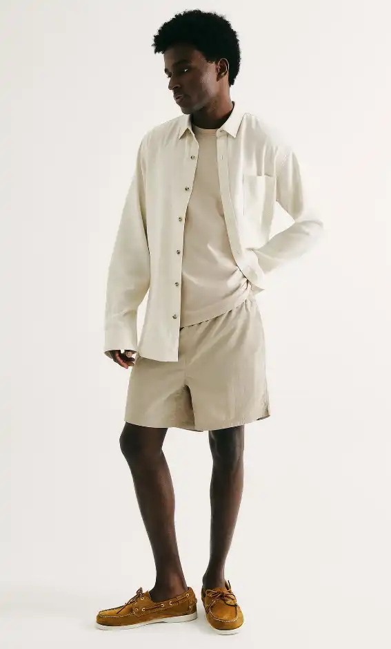 Shorts de banho com modelagem reta, confeccionado em tecido texturizado que agrega estilo e conforto. Possui cós elástico