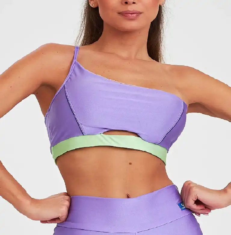 Top lindo, cheio de detalhes e tendências da moda. Modelo assimétrico, um ombro só, e possui abertura frontal. Indicado para atividades físicas de baixo e médio impacto. Possui um elástico embutido no cós que garante maior conforto e segurança durante o uso. Tecido com compressão muscular e tecnologia ketten que garante maior durabilidade da peça. O bojo é removível.