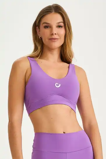 Em uma cor vibrante, o Top Nakay com Logo Roxo Sophia é ideal para quem busca estilo e sustentação. O tecido de alta resistência