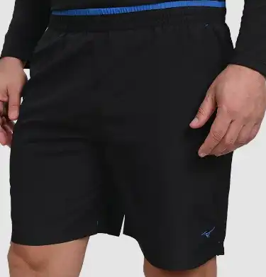 Bermuda feita com tecido extremamente leve e confortável, com bolsos laterais e cordão interno, sunga interna em mesh e forro do bolso frontal em tecido atoalhado. Combinação de cores inovadoras e diferenciadas. Logo Mizuno bordado