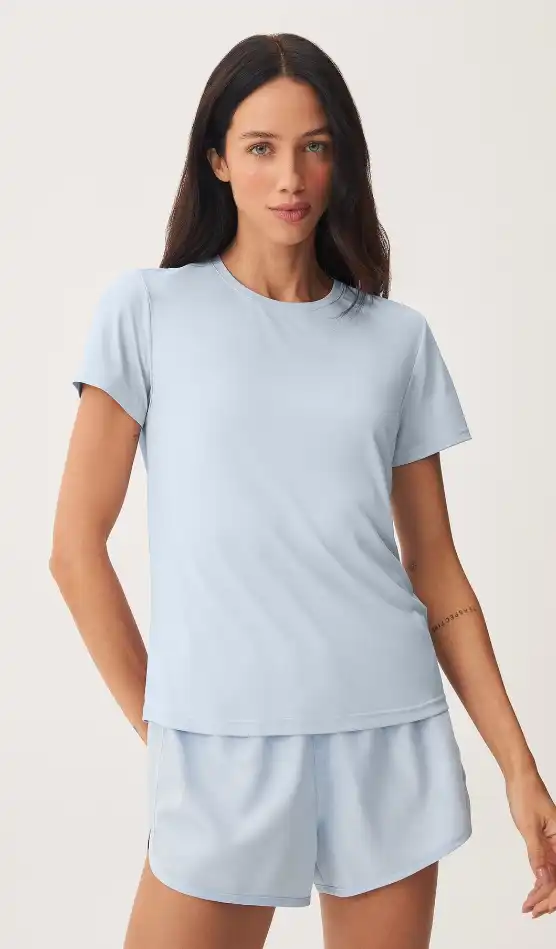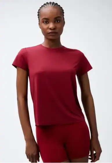 poliamida conta com manga curta e gola arredondada. Com alta elasticidade e
