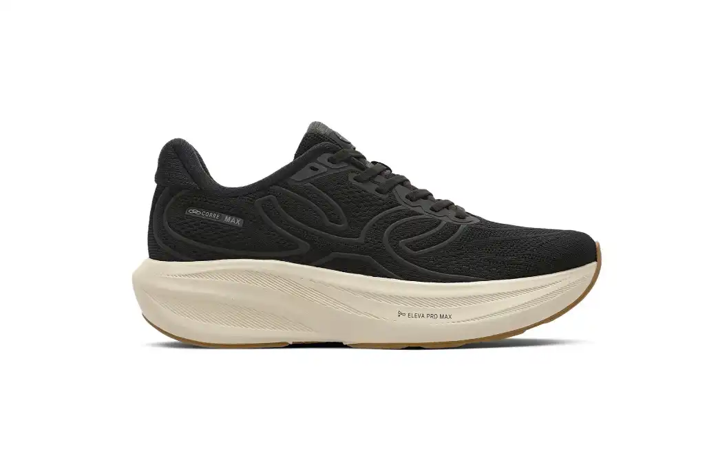 durante as corridas. Sua entressola possui a tecnologia Eleva Pro Max, que melhora os índices de resiliência, leveza, conforto e responsividade. Conta também