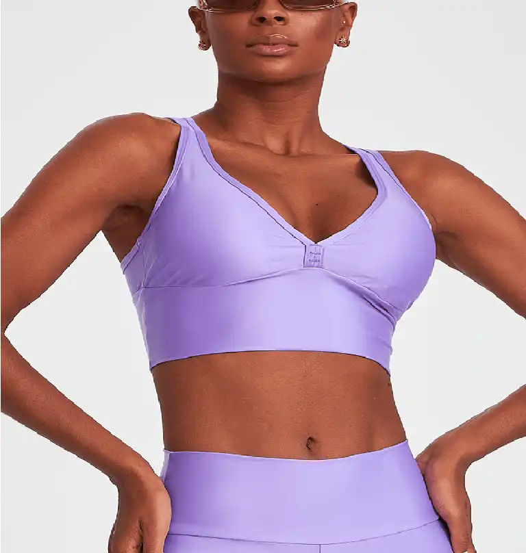 Top confortável com bojo removível, desenvolvido em modelagem alongada e com tecido que possui leve brilho, proteção solar e compressão, proporcionando sustentação e segurança para os treinos.